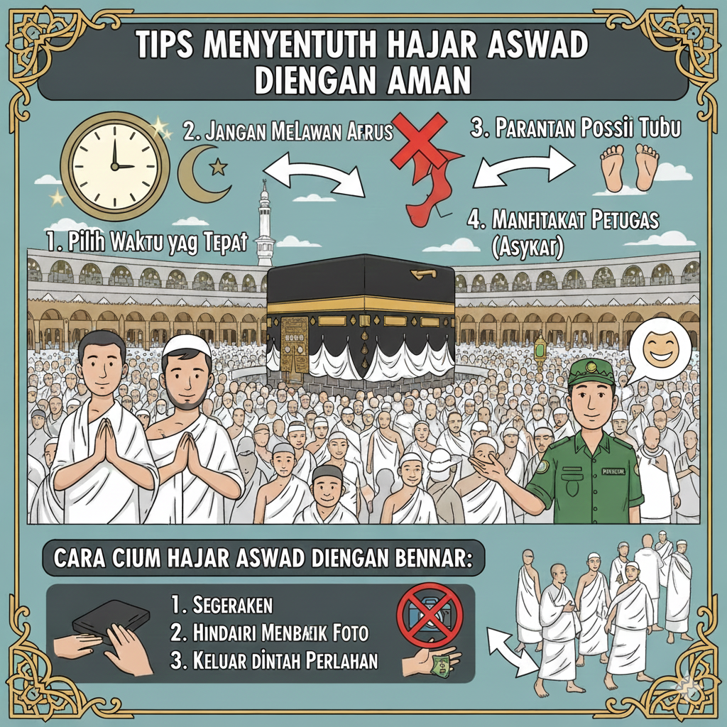 Namun, karena antusiasme jutaan orang yang luar biasa, area di sekitar Hajar Aswad sering kali menjadi sangat padat dan penuh sesakan. Agar niat ibadah Anda tetap berjalan lancar dan selamat, berikut adalah panduan dan tips menyentuh Hajar Aswad dengan aman.