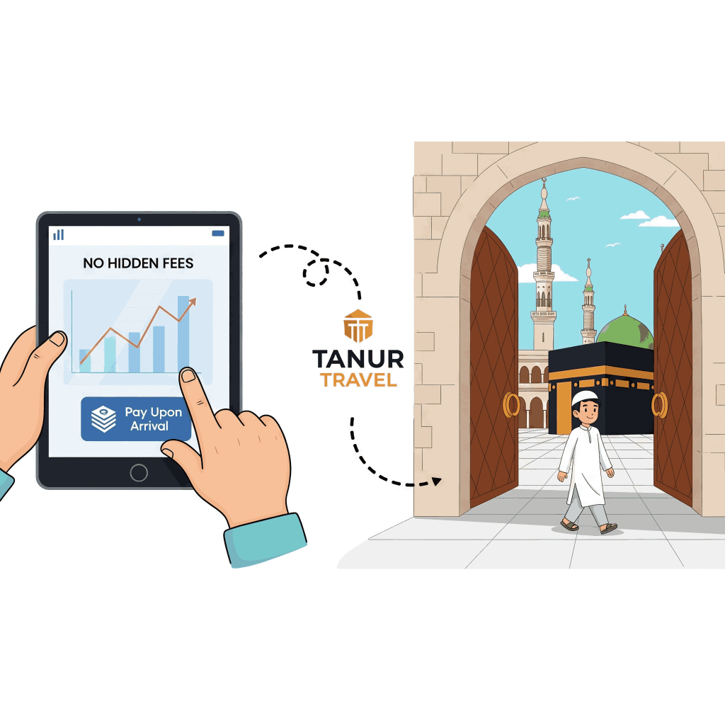 Program "Umroh Bayar Setelah Sampai": Ini adalah inovasi revolusioner yang menjadi salah satu keunggulan utama Tanur Travel. Hanya Tanur yang berani menawarkan program di mana Anda dapat melunasi biaya umroh setelah tiba di Tanah Suci (Haromain). Keuntungan finansial yang didapat dari program ini sangat besar, karena mengurangi beban finansial di awal dan memungkinkan lebih banyak orang untuk segera memenuhi panggilan Baitullah tanpa harus terbebani skema pinjaman atau riba.