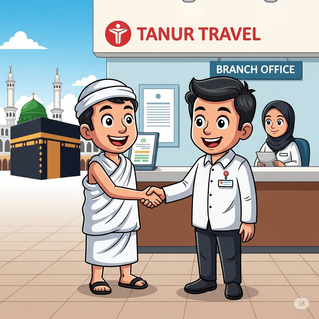 Aksesibilitas Maksimal: Di mana pun Anda tinggal, baik di kota besar maupun daerah, kemungkinan besar ada cabang Tanur Travel yang tak jauh dari lokasi Anda. Ini berarti Anda tidak perlu lagi menempuh perjalanan jauh atau merasa kesulitan untuk mendapatkan informasi dan layanan. Kantor fisik yang mudah dijangkau membuat proses konsultasi, pendaftaran, dan penyerahan dokumen jadi lebih praktis.